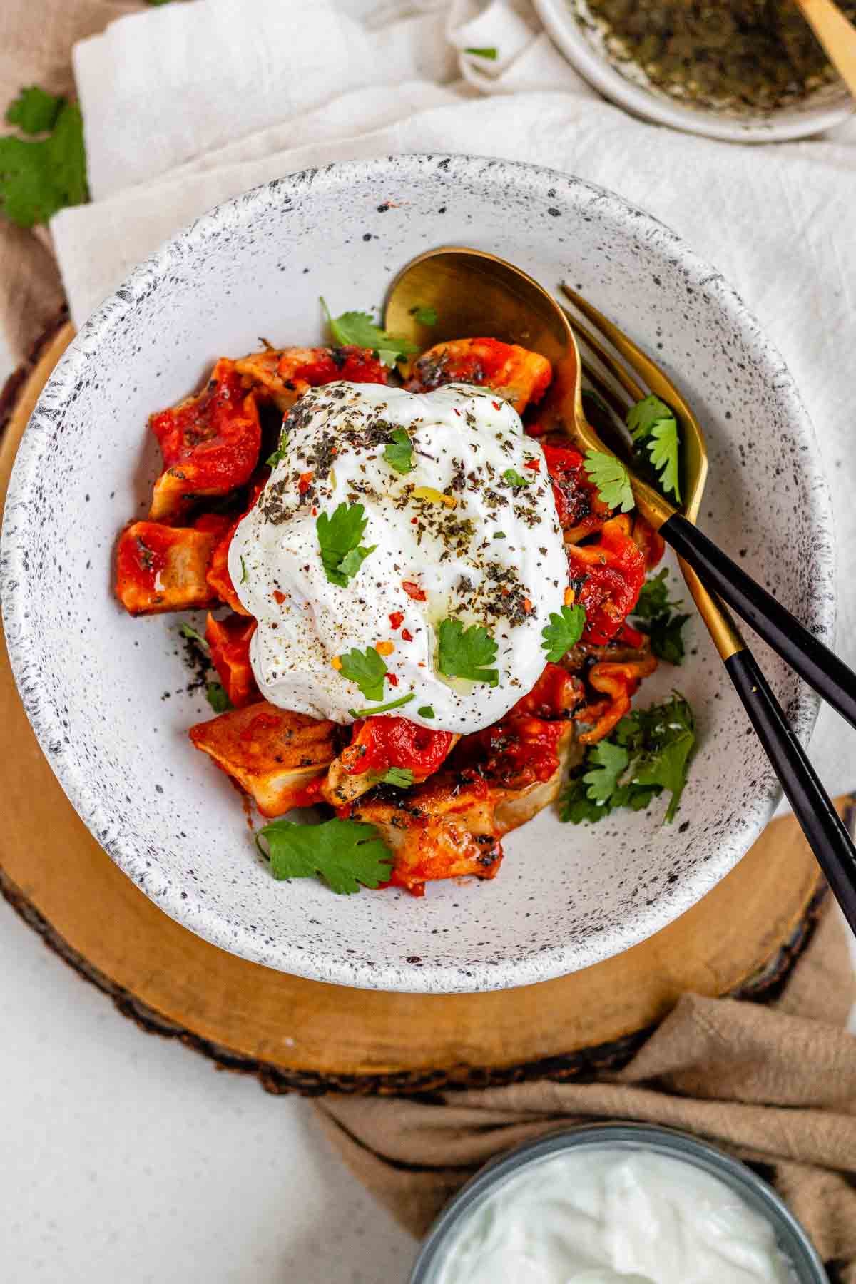 This is one of my favorite Turkish dishes and one of my favorite dishes of all time! They do take some time to make, but I grew up making pierogi from a very young age, so to me, it’s almost meditative.